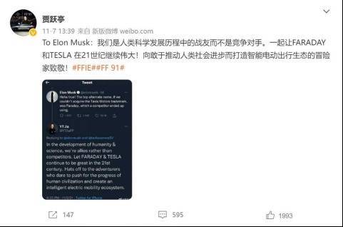 贾跃亭“握手”马斯克? 法拉第未来宣布接入特斯拉超充网络